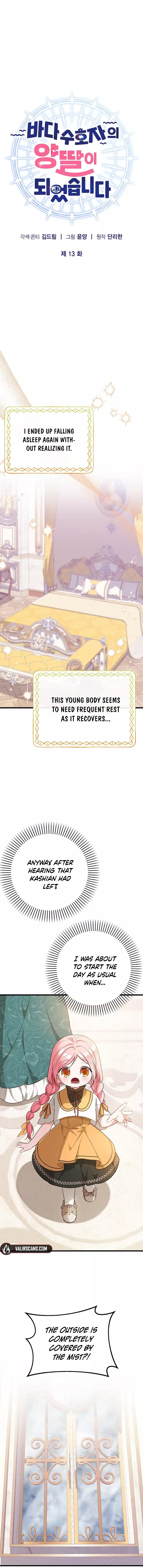 Read the latest manga I Became the Adopted Daughter of the Sea Guardian Chapter 13 at Kingofshojo . Manga I Became the Adopted Daughter of the Sea Guardian is always updated at Kingofshojo . Dont forget to read the other manga updates. A list of manga collections Kingofshojo is in the Manga List menu.